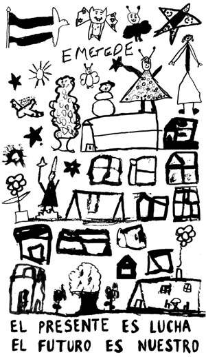 El cambio social en chiquitito. El artículo se publicó en la revista TXT de esta semana. Adjunto, la foto de la revista, y una composición con los dibujos de los pibes del MTD hecha por los compañeros del Taller Popular de Serigrafía que coordinan el taller de plástica, con una de las seis frases votadas en la asamblea general para que acompañen las actividades de estos días.