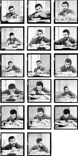 Los anunciados 15 minutos se convirtieron en dos horas de charla relajada, en la que pude fotografiar a mis anchas a ese hombre que ya en ese entonces era un personaje legendario. Tres meses después de aquellas fotos logradas con la poca película que llevaba, el Che Guevara desaparecería paulatinamente del panorama político de Cuba e iniciaría el camino que lo conduciría, después de un agitado periplo por cuatro continentes y casi un año de trágicas escaramuzas guerrilleras, a su asesinato en una escuelita rural de la sierra bolivianas. Desde finales de 1964 hasta su muerte, el Che se convertiría en el enigma más perseguido por la prensa internacional, en la presa más codiciada por los servicios criminales de Estados Unidos, y en un héroe para los hombres y mujeres rebeldes de todo el mundo.